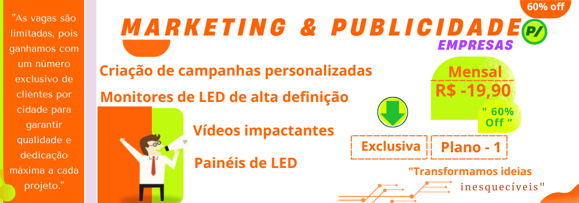 Visual: Um vídeo curto e dinâmico mostrando diferentes exemplos de anúncios em monitores de LED, com destaque para a alta qualidade da imagem e a versatilidade dos formatos.